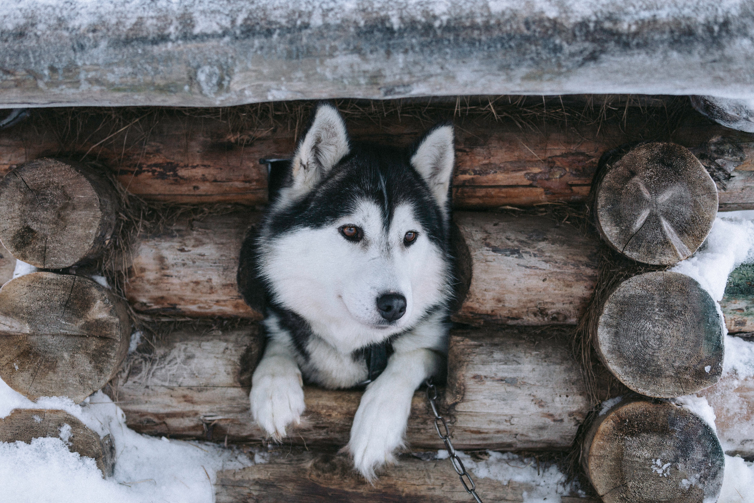 Their family includes 6 horses (2 Icelandic Horses and 3 Norwegian Fjord Horses and 1 Yakutian Horse), and 85 huskies of different breeds (Siberian Huskies, Alaskan Huskies, Greenland Dogs and, Wolf Dogs). During my three weeks stay with them, there were 7 new-born puppies added to the family. About a quarter of these dogs were either rescued or given to Alex and Tinja, after various problems with their previous owners. They give the dogs a second chance at being treated fairly and a second shot at a happy family.